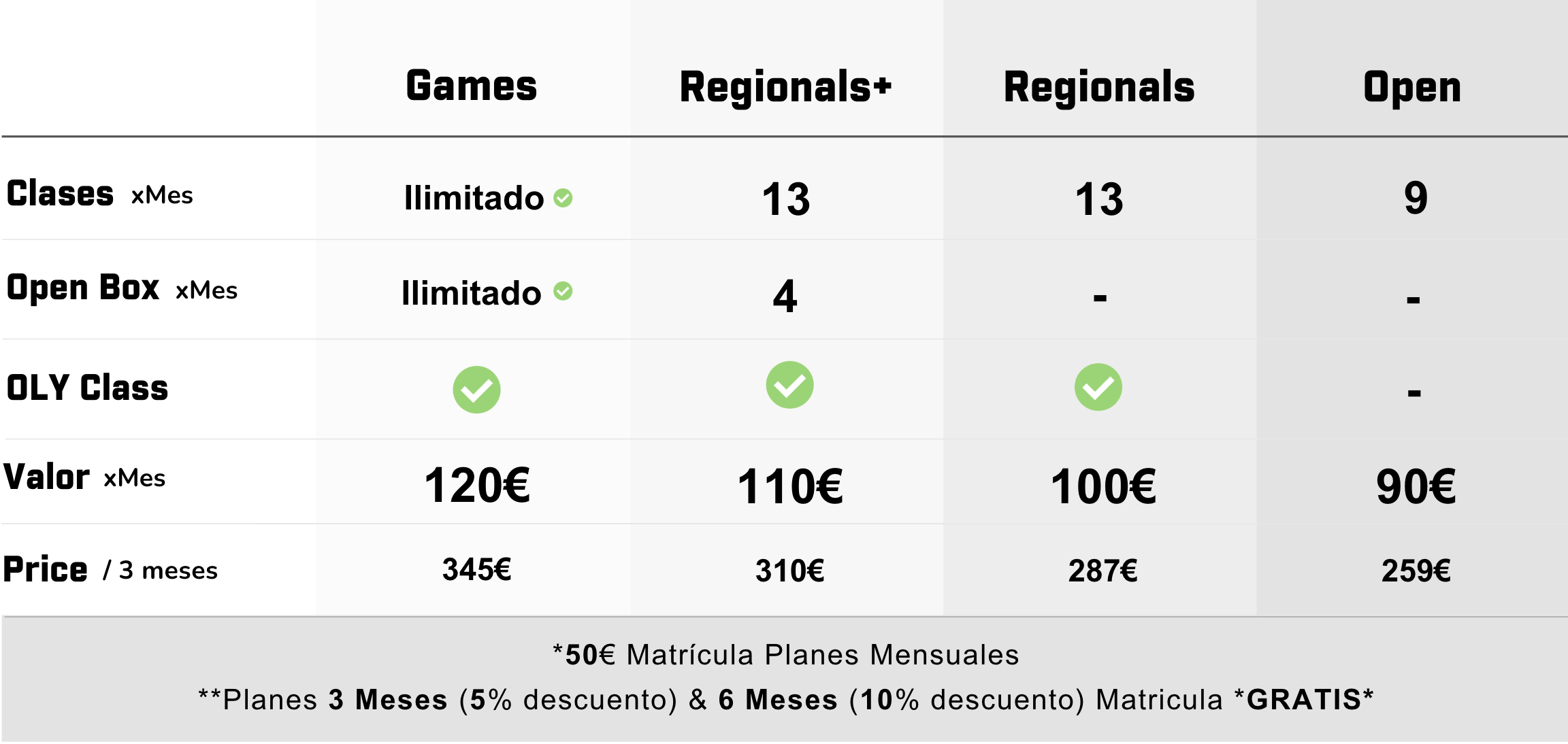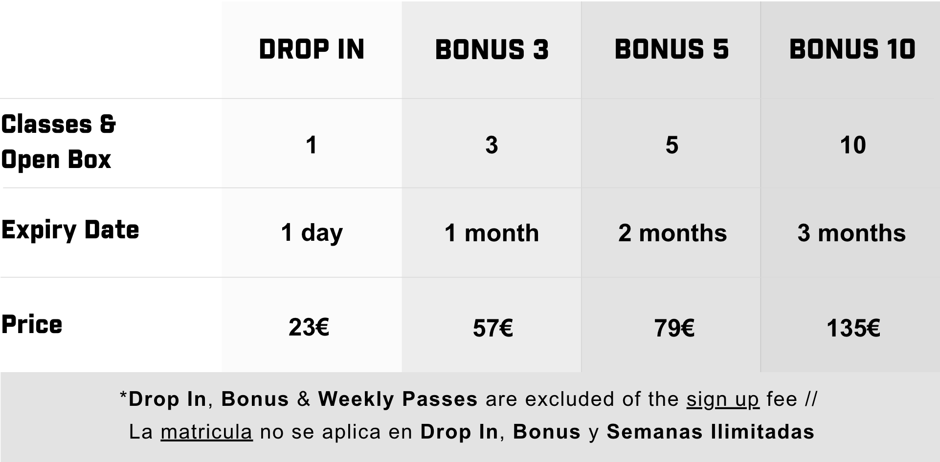 *All bonus include all classes & open box // Todos los bonus incluyen todas las clases y open box